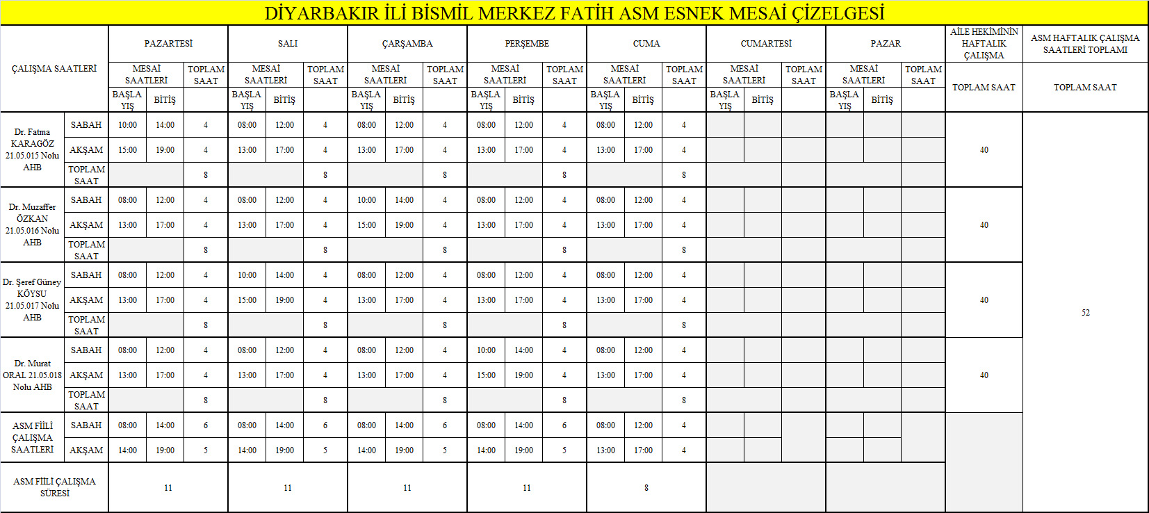 Aile Sağlığı Merkezimizde esnek mesai uygulanmaktadır.